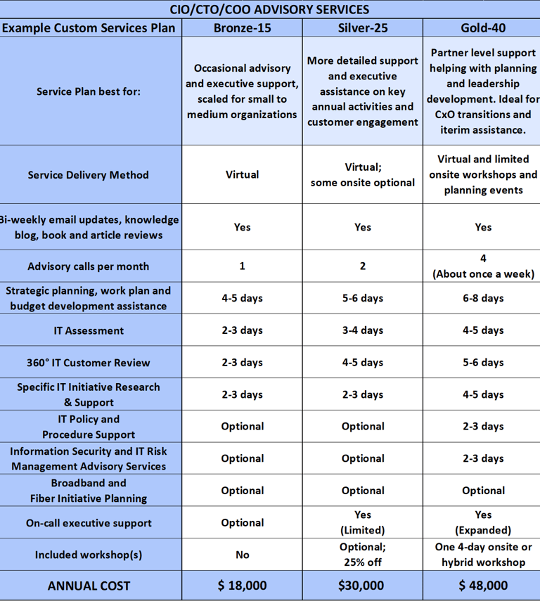 > We are ideally positioned to support new CIO/CTO/COOs or small-to-medium organizations that do not have the senior leadership depth to move all needed initiatives forward.